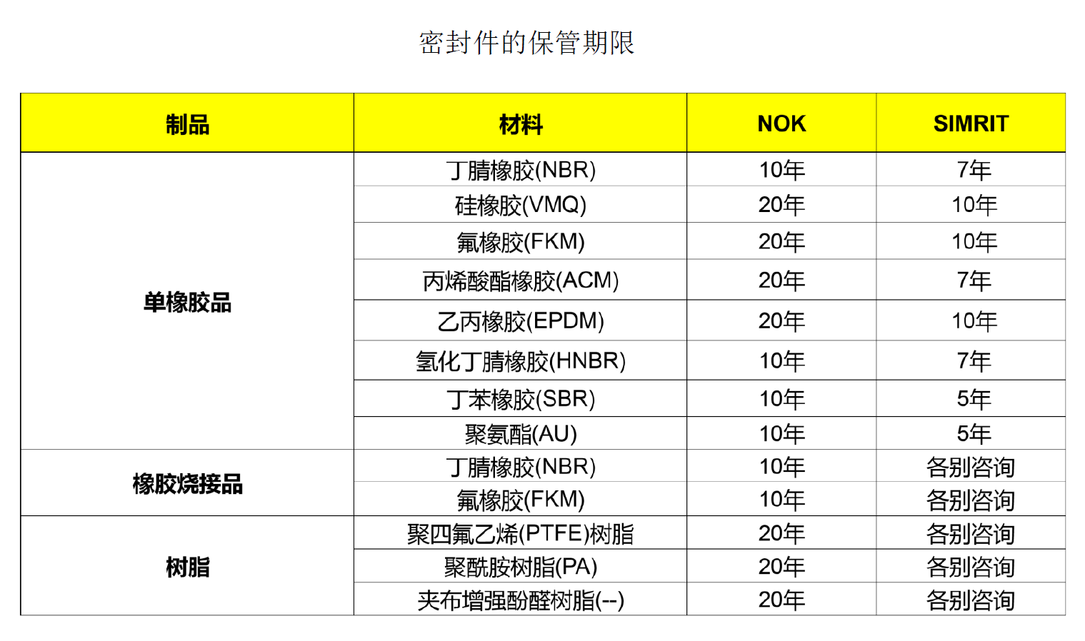 密封件的保管期限