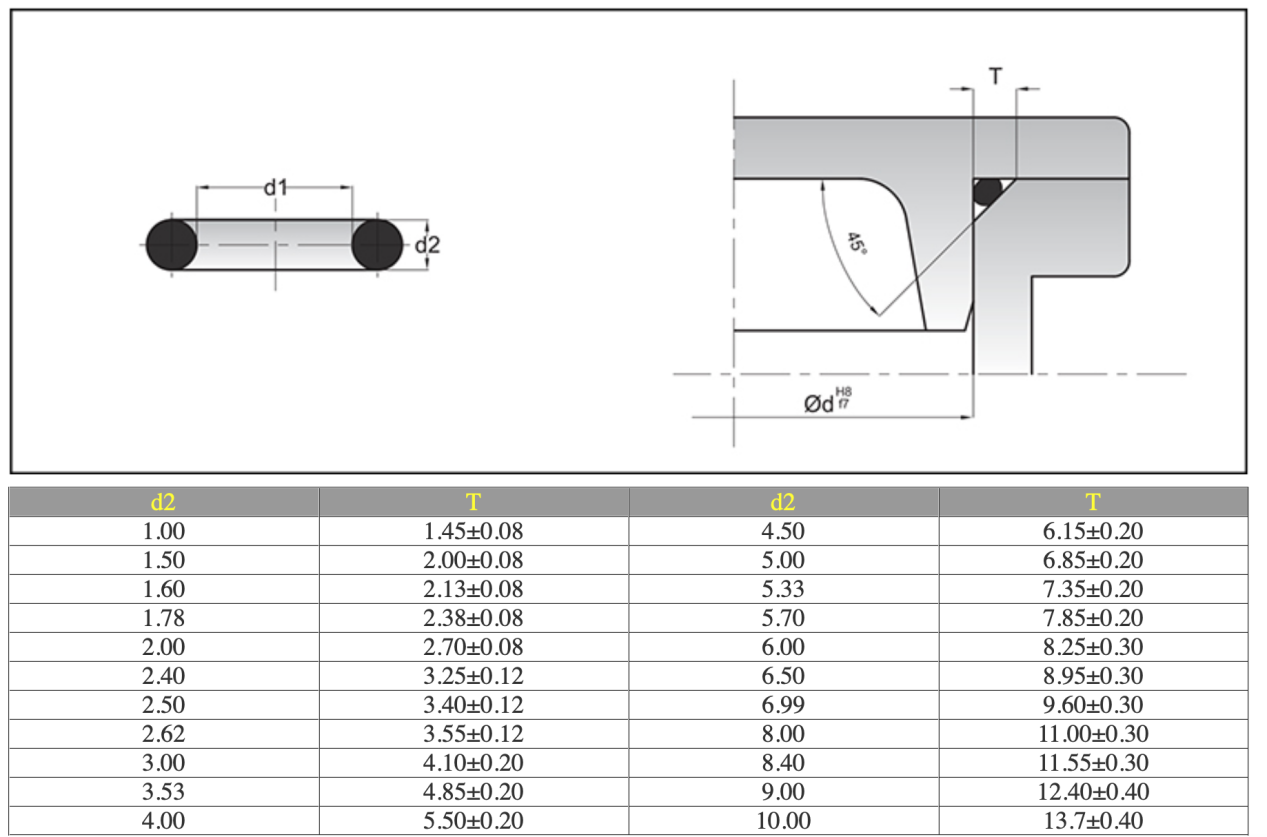 對(duì)于使用GB1235-76標(biāo)準(zhǔn)0形圈的溝槽,可直接按照標(biāo)準(zhǔn)規(guī)定的尺寸進(jìn)行設(shè)計(jì)。